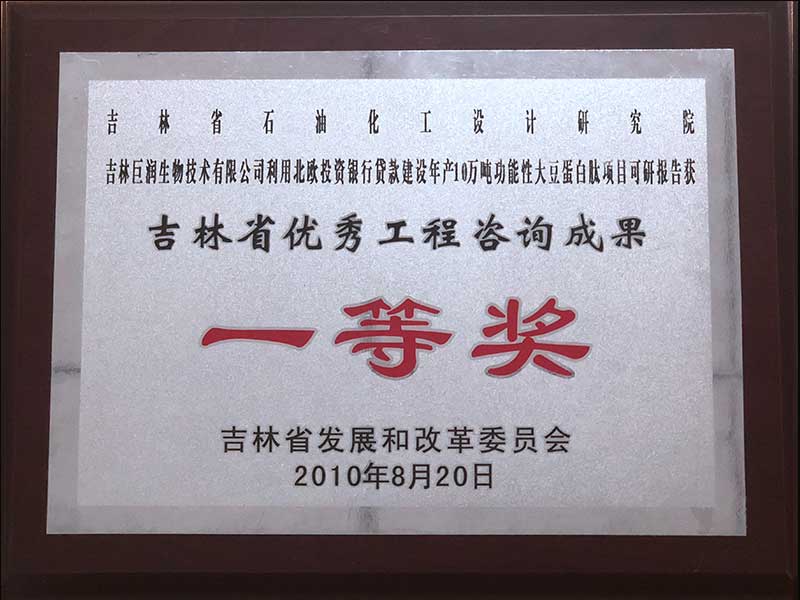 2010年吉林省优秀工程咨询成果一等奖